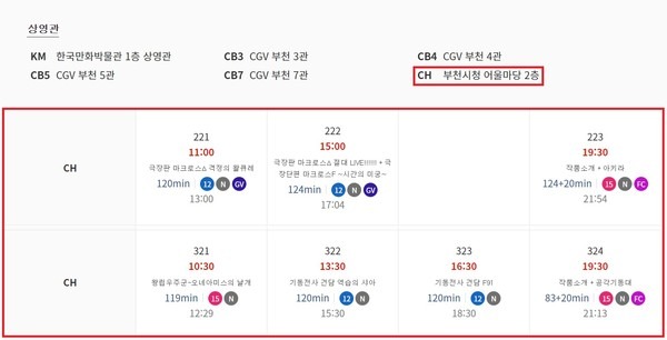 - 지점 선택 메뉴 활용: 경기/부천 지역에서 CGV 부천(중동 현대백화점 인근)이나 CGV 역곡 등을 선택하면 조력자 역할을 수행하며 오늘부터 일주일간의 시간표를 지능적으로 나열 가이드하며 명확한 시간 확인을 지원합니다.