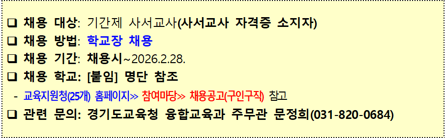 가장 먼저 최신 채용 일정을 확인하고 본인에게 맞는 공고를 필터링하기 위해 경기도교육청 공식 누리집의 인력 채용 게시판에 접속하시기 바랍니다.