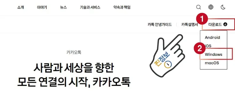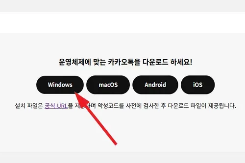 가장 먼저 안정적인 설치를 위해 본인의 PC 운영체제(Windows/macOS)를 확인하고 카카오톡 공식 웹사이트에 접속하시기 바랍니다.