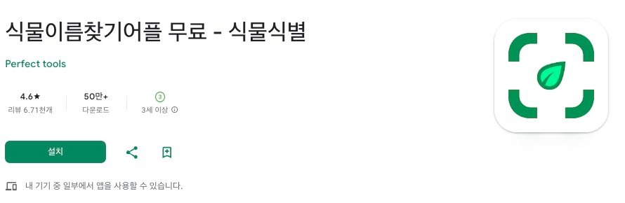 가장 먼저 정확도 높은 식물 판별을 위해 국내외에서 검증된 공식 식물 인식 어플을 안전하게 설치하시기 바랍니다.