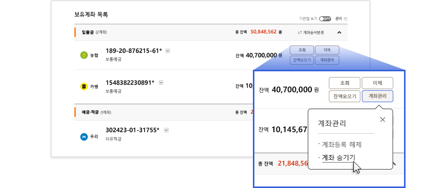지능형 자금 흐름 예측 서비스: 입출금 패턴을 조력자처럼 실시간으로 확인 가이드하여 명확하고 안정적인 자금 운용을 지원합니다.