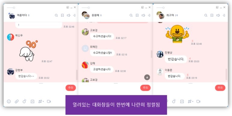 매번 프로그램 목록을 뒤질 필요 없이 클릭 한 번으로 프로젝트 팀룸이나 대화창 화면에 도달하는 지능적인 정보 관리 환경을 경험해 보세요.