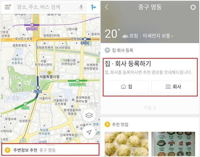 매번 포털에서 검색할 필요 없이 클릭 한 번으로 나만의 집이나 회사 경로 화면에 도달하는 지능적인 정보 관리 환경을 경험해 보세요.