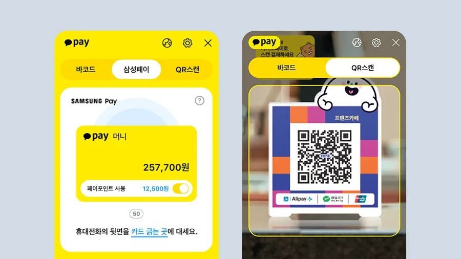 삼성페이 연동 및 카드 단말기 태그 가이드: 카카오페이 앱 내 삼성페이 기능을 통해 조력자처럼 실시간으로 가이드받는 명확한 접속 시스템을 제공합니다.