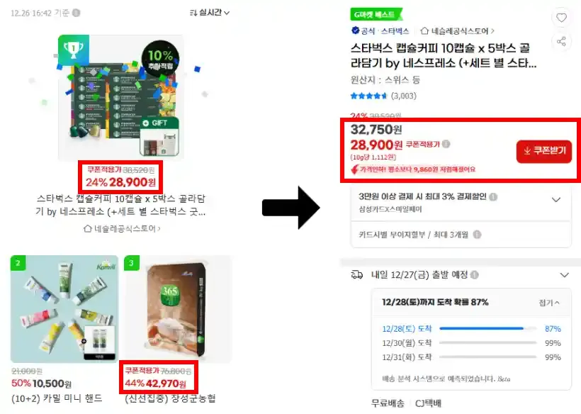 실시간 가격 비교 및 할인 가이드: 최저가를 위해 조력자처럼 실시간으로 확인 가이드하여 명확하고 신속한 구매를 지원합니다.