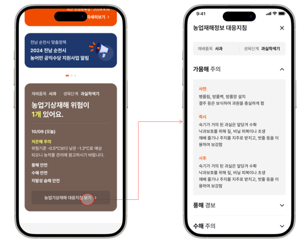 실시간 지역별 기상 및 병해충 정보 가이드: 안정적인 재배를 위해 조력자처럼 실시간으로 확인 가이드하여 명확하고 신속한 대응을 지원합니다.