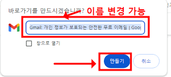지메일 홈페이지 바로가기 아이콘 생성: 브라우저 메뉴의 '바로가기 만들기'를 통해 바탕화면에 전용 아이콘을 조력자처럼 실시간으로 생성 가이드하며 명확한 접근성을 확보합니다.