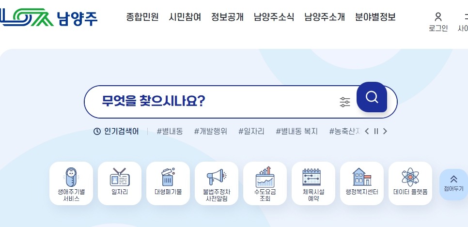 가장 먼저 정확한 행정 정보 확인과 안전한 민원 신청을 위해 남양주시에서 운영하는 공식 온라인 플랫폼에 안전하게 접속하시기 바랍니다.
