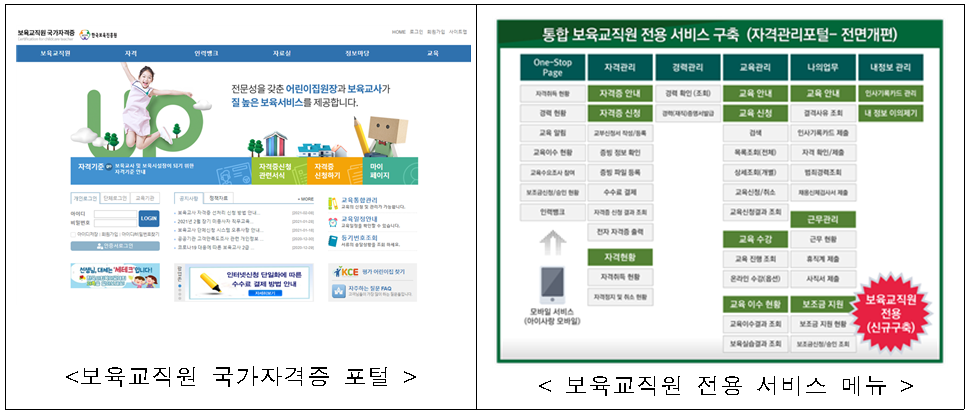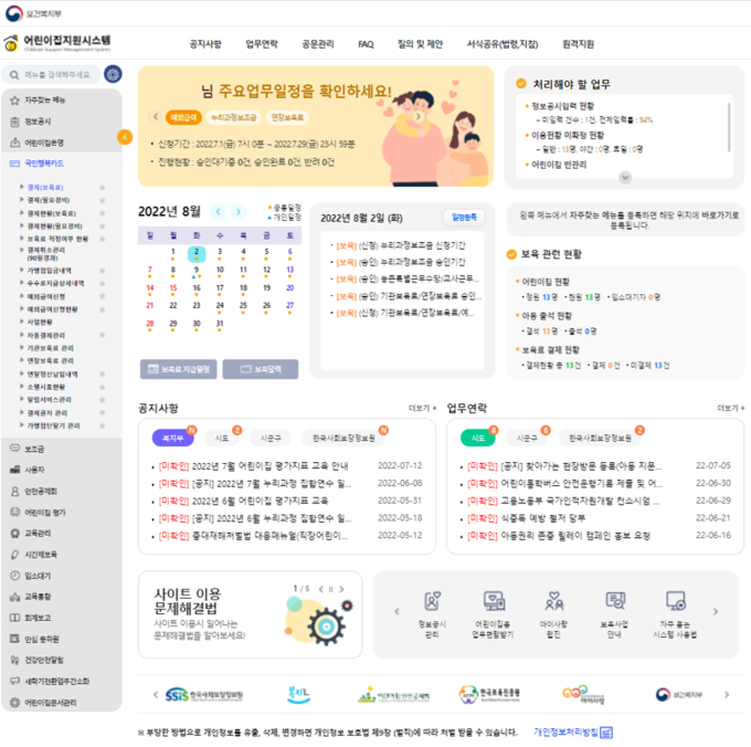 지자체 행정지원 및 자격관리 정보: 사용자의 직위(원장, 교사, 공무원)에 맞는 메뉴 선택을 위해 조력자처럼 실시간으로 통합 가이드하는 지능형 행정 환경을 제공합니다.